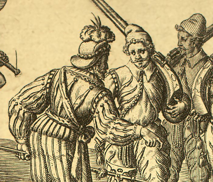 L’épée au côté pour les officiers et l’arquebuse sur l’épaule pour la troupe, la douzaine de soldats français s’avançait sous les acclamations de la population du village indien. Conduit par le capitaine Vasseur et l’enseigne d’Erlach, le détachement avait fière allure. Envoyé en mission diplomatique par René de Laudonnière, le but était de conclure une alliance avec le paraousti Outina, grand roi du peuple Thimogona. En gage de bonne foi, la restitution des prisonniers qu’avait fait Satouriona lors de sa dernière expédition guerrière (voir épisode précédent : Le sentier de la guerre). Le petit groupe d’anciens captifs marchait allègrement à la suite de leurs libérateurs, ravi d’avoir échappé aux perspectives d’une vie d’esclavage.
