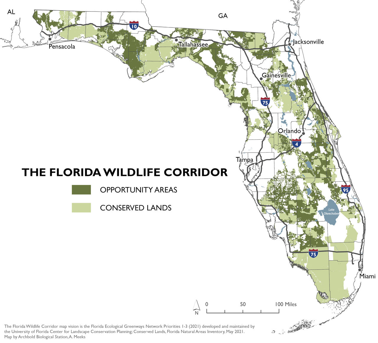 Face à l’augmentation de population de la Floride (22 millions, soit +15% en 10 ans) et le grignotage constant des ensembles naturels, il fallait agir et stopper la fragmentation. Le but de ce corridor, c’est de conforter les zones naturelles existantes (8 millions d’acres (3,2 millions d’hectares)) et de les lier les unes avec les autres, afin de renforcer un corridor naturel qui va des Everglades (au sud) jusqu’au nord de la Floride. Le but est de faciliter la reproduction, l’expansion et/ou la migration des espèces naturelles, et notamment celles en danger de disparition. Urbanisme, tourisme et agriculture vont ainsi devoir cohabiter plus largement avec la vie sauvage.