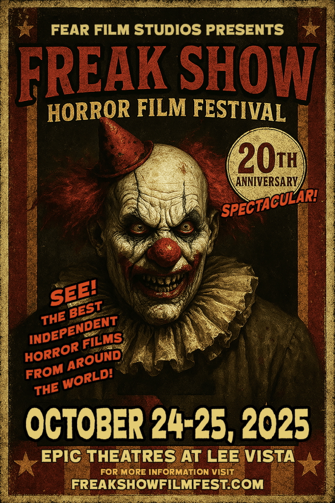 « Freak Show Film Festival » : festival de films d’horreur avec de nombreux films issus du cinéma indépendant. Prix « Freak Show » remis lors du festival. Epic Theaters, 5901 Hazeltine National Dr, Orlando, FL 32822 – Tél. : (407) 894 0599. www.freakshowfilmfest.com