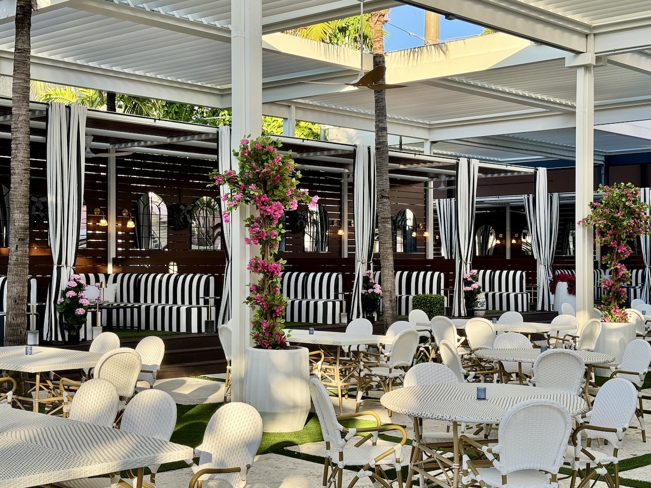 Un nouveau concept vient en effet de reprendre les 3 200 m² du site : Throw Social Miami, déjà présent à Delray Beach et à Washington D.C. Imaginé par l’entrepreneure Ginger Flesher-Sonnier, le lieu mise sur une expérience immersive mêlant restauration, jeux et musique live. L’ancien décor a été repensé, notamment avec la spectaculaire Tower Bar faite de conteneurs maritimes, revisitée dans des tons verts et roses.