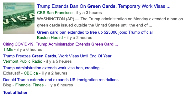 Les médias américains le comprennent de la même manière, avec par exemple le New-York Times « L’ordre donné lundi étend la prohibition des Cartes Vertes en plus de suspendre la délivrance d’un grand nombre de visas de travail, et ce sera effectif jusqu’à la fin de l’année.«