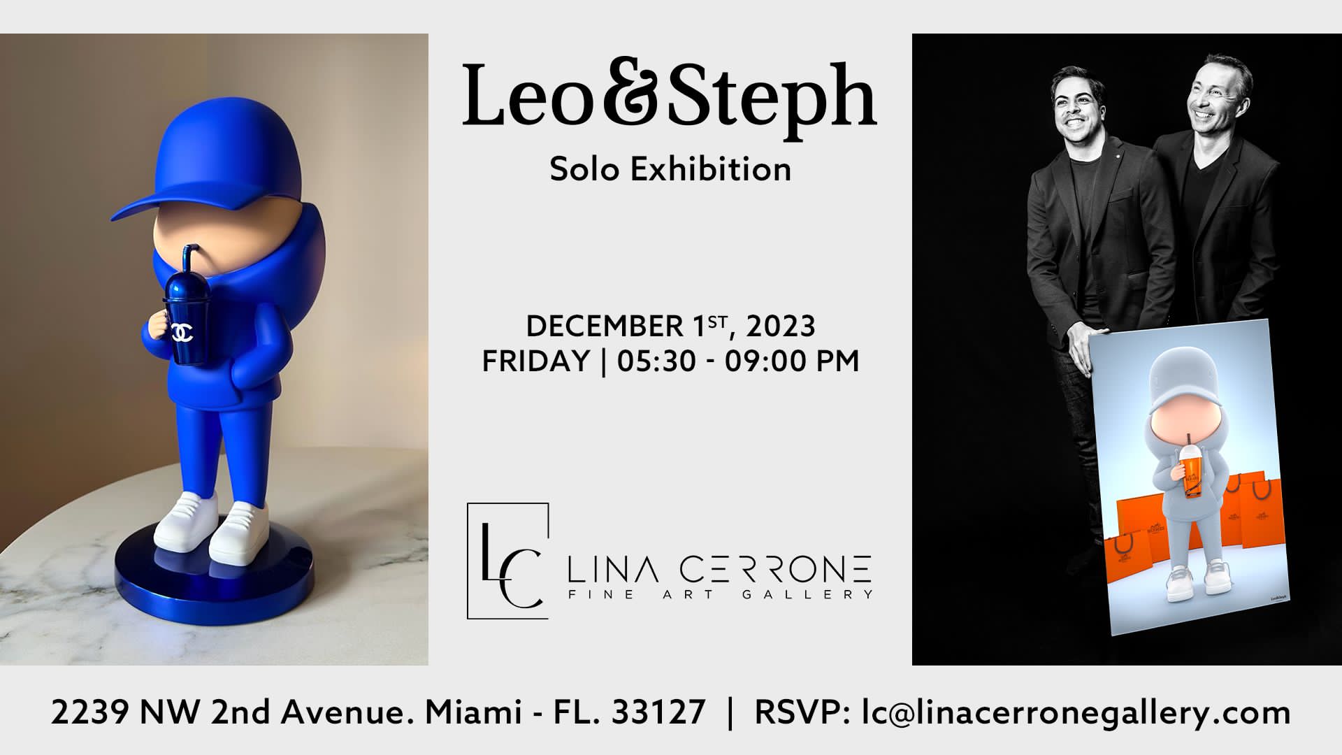 Encore pus récent : début novembre 2023, les Français Lina Cerrone et son fils Fredric Lean ont ouvert la Lina Cerrone Gallery : un magnifique espace juste en face de The Deck, au cœur de Wynwood dans la même rue (à deux pas) des Wynwood Walls. Inaugurations et premières expos temporaires arrivent fin novembre et bien sûr durant la Miami Art Week : ça va mettre l’ambiance dans le quartier. Il y aura des soirées autour des sculpteurs français « Leo & Steph » les 1, 2 et 3 décembre.