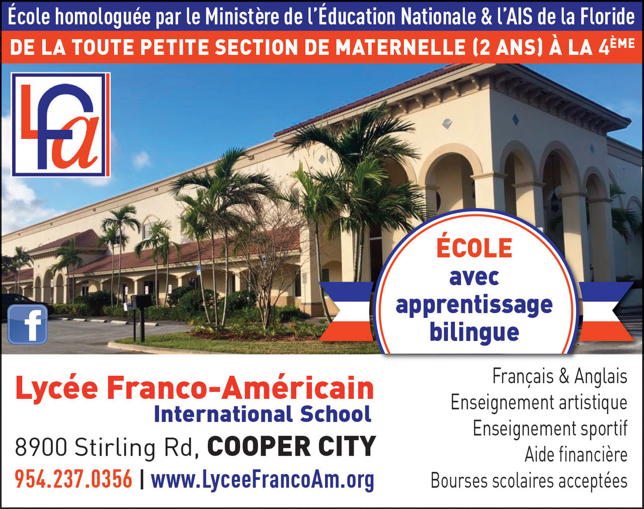 Vous voulez discuter avec les francophones qui habitent en Floride? Likez-nous sur Facebook : ils y sont déjà ! POUR TOUTES LES INFOS D’ACTUALITÉ (SORTIES LOISIRS…), VOUS POUVEZ TÉLÉCHARGER NOTRE JOURNAL MENSUEL QUI EST EN HAUT DE LA COLONNE DE DROITE.